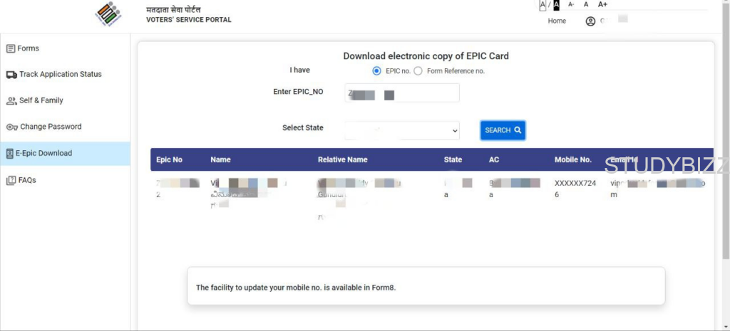 మీ ఓటర్ కార్డు లోని EPIC Number ఎంటర్ చెయ్యండి.