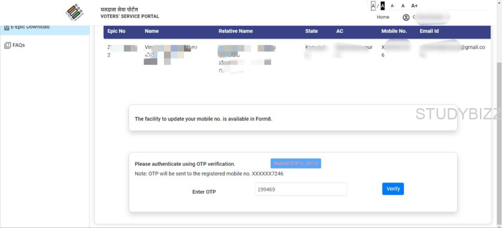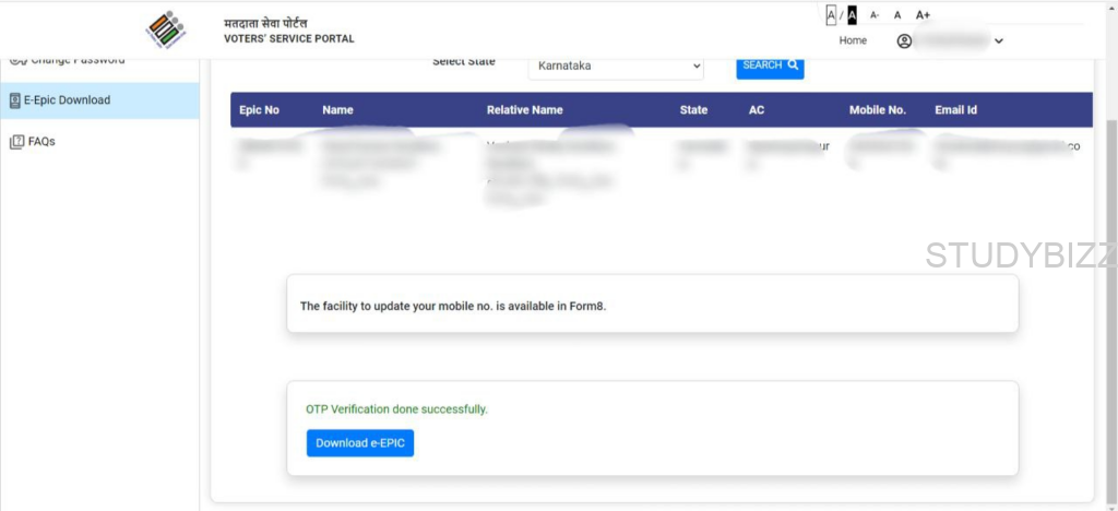 ఓటీపీ వెరిఫికేషన్ పూర్తి అయినా తరువాత Download e-EPIC పైన క్లిక్ చెయ్యండి.