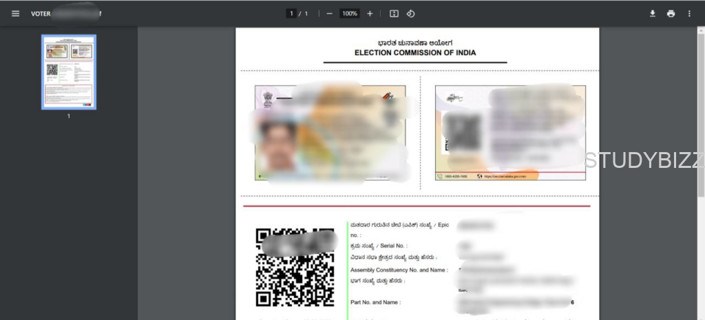డౌన్లోడ్ చేసిన తరువాత కింది విధంగా e-ఓటర్ కార్డు ఓపెన్ అవుతుంది.