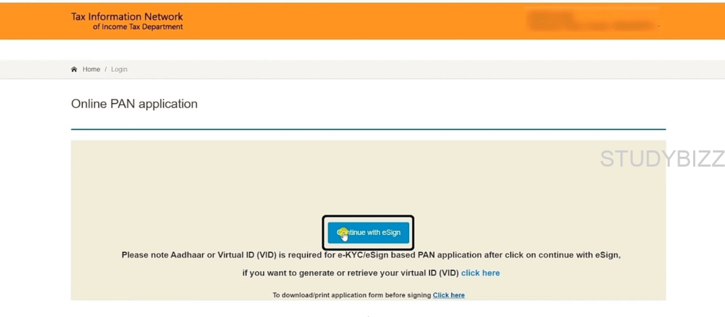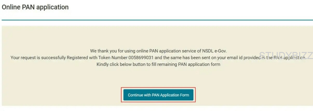 ఇప్పుడు, ‘Continue with PAN application form’ పైన క్లిక్ చేయండి.