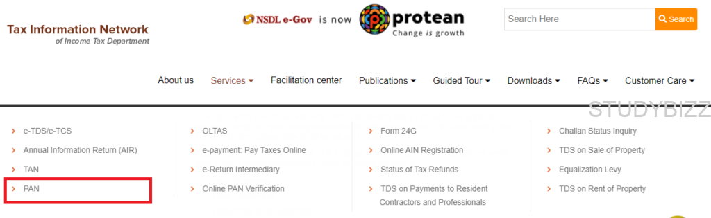 Step 1: ముందుగా కింద ఇవ్వబడిన NSDL e-Gov పోర్టల్ని సందర్శించండి