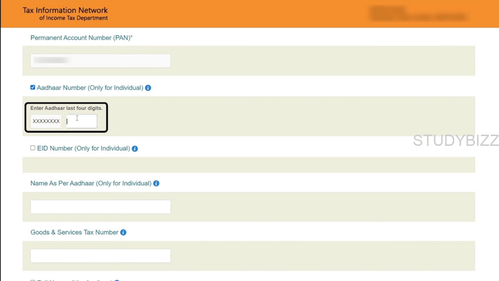 Step 8: తరువాత క్రిందికి స్క్రోల్ చేసి, మీ ఆధార్ నంబర్లోని చివరి నాలుగు అంకెలను నమోదు చేయండి.