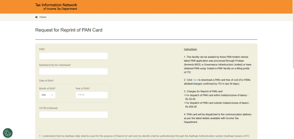 Step 1: NSDL PAN Reprint Page ఓపెన్ చేయండి