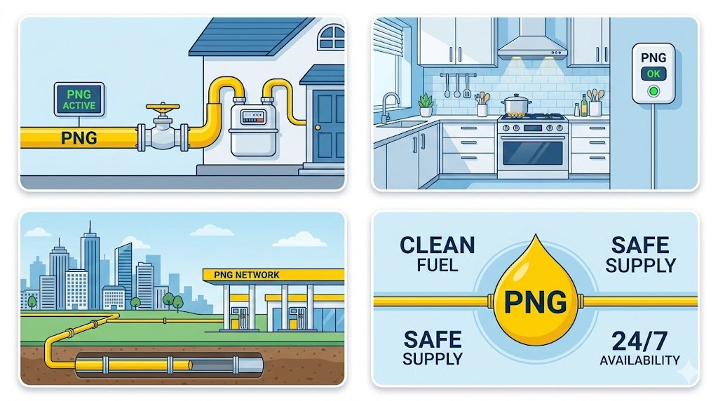 ఈ బ్లాగ్లో PNG అంటే ఏమిటి, LPGతో పోలిస్తే ఎలా ఉంది, ఖర్చులు, కనెక్షన్ ప్రక్రియ, ప్రయోజనాలు మరియు భవిష్యత్తు అవకాశాలపై పూర్తి వివరాలు తెలుసుకుందాం.