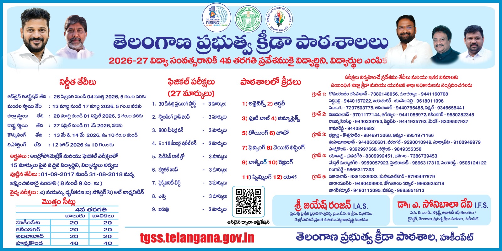 | TG Sports School Online Apply | https://tgss.telangana.gov.in/apply |