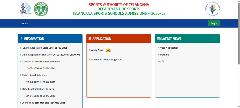 👉 TG Sports School Online Apply కోసం అధికారిక వెబ్సైట్లో ఆన్లైన్లో అప్లై చేయాలి.