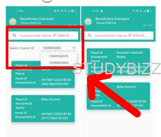 Step 4 : వాలంటీర్ యొక్క క్లస్టర్ ఐడిని సెలెక్ట్ చేసుకుంటే వాలంటీర్ పరిధిలో ఉన్న హౌస్ హోల్డ్ వివరాలన్నీ కూడా చూపిస్తుంది. ఎవరికి సర్వే చేయాలో వారి కుటుంబ పెద్ద పేరును సెలెక్ట్ చేసుకున్నట్లయితే వివరాలతో కూడిన Display ఓపెన్ అవుతుంది.